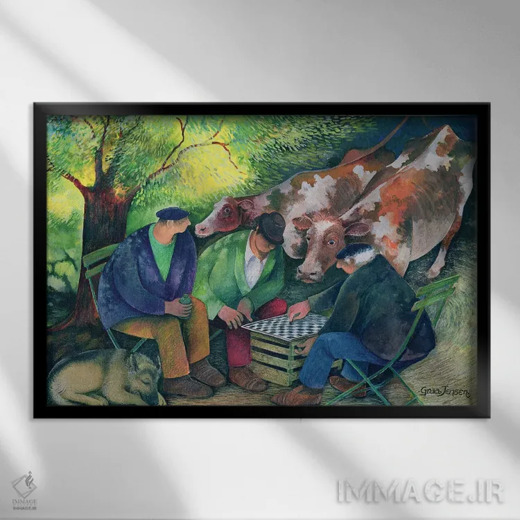 «فروشندگان گاو» اثرِ «لیزا گرا یِنسن» از آن کارهاییست که در کنار رنگهای خنثی، تضاد دلچسبی میسازد؛ برای دکورهایی با رنگهای خنثی انتخاب خوبیست. حسش صمیمی است، اما کیفیتش جدی و خوشپرداخت.