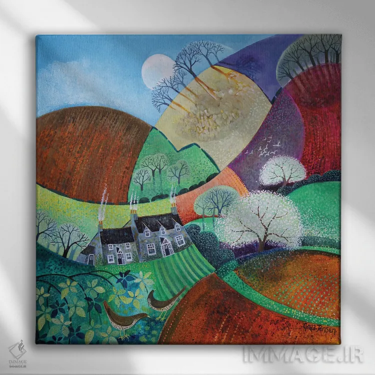 بوم گالری ایماژ نسخهی چیدماناتیوِ حرفهای از یک اثر هنری است. روی کنواس سفیدِ یکدست و بدون اسید با چاپ هنریِ دقیق (Giclée) برای گذارهای نرمتر و وضوح بالاتر و جوهرهای آرشیوی Epson UltraChrome HDR برای بازنمایی بهتر تونهای حساس؛ این ترکیب باعث میشود گذارهای رنگی نرمتر و بافتها خواناتر شوند. تابلو پس از آمادهسازی روی کلاف کشیده میشود و نصب آن ساده و بیدردسر است.