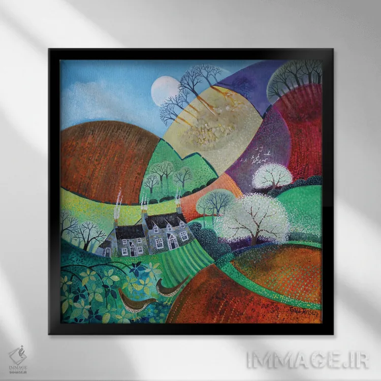 براساس پالت ترکیبی اثر، قاب تیک گرم (چوبی) پیشنهاد اول است و مشکی مات (فریم متوسط) مکمل. برای سفارشهای پروژهای با ابعاد و قابهای اختصاصی با ایماژ در تماس باشید.