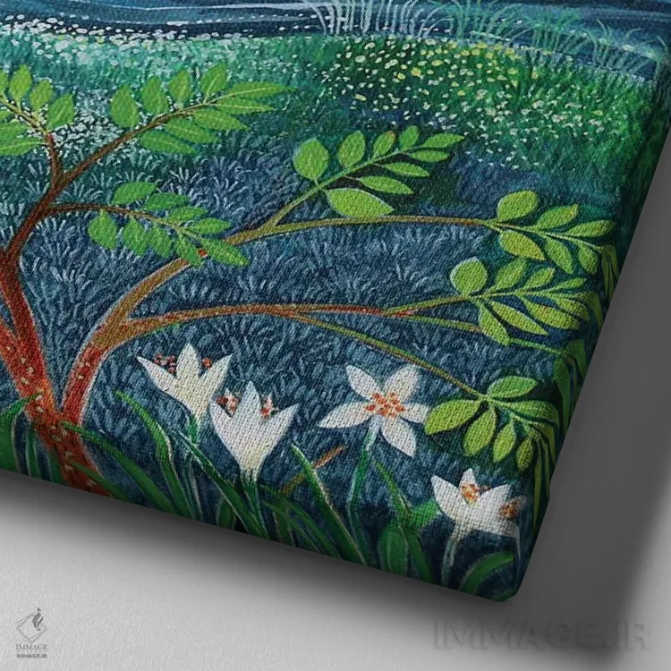 طراحی بوم گالری ایماژ بهگونهای است که اثر روی دیوار «پرداختشده» و حرفهای دیده شود—نه پرزرقوبرقِ بیپایه؛ بلکه دقیق و خوشپرداخت. بافت ظریف کنواس باعث میشود حس اثر هنری را در نگاه نزدیک نگه میدارد و همین «پرداخت» تفاوت را میسازد. در قابپذیری، قاب مناسب مرز بصری تمیزتری به اثر میدهد. حاصل کار، یک تابلو خوشنشین است که هم از دور اثرگذار است و هم از نزدیک خوشخوان؛ برای هدیهی هنری هم انتخاب محترمانهای است.