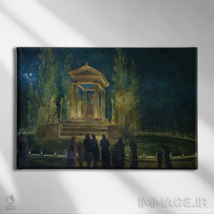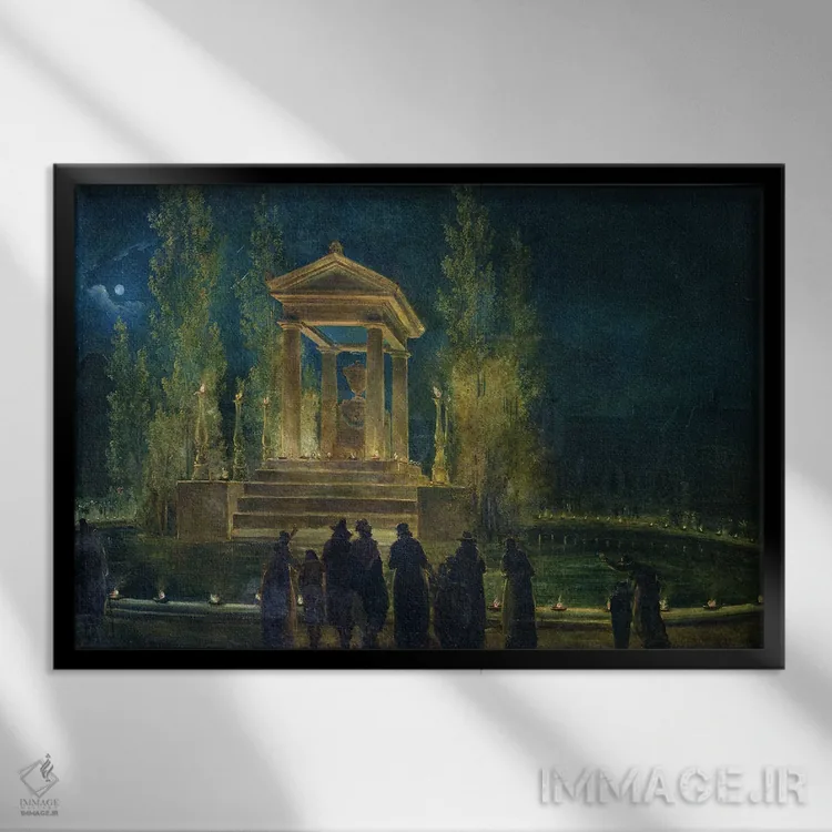 «یادبود ژان ژاک روسو در باغ تویلری، پاریس، ۱۷۹۴» اثرِ «هوبرت روبر» میتواند حس نظم و استحکام به فضا بدهد؛ برای راهروهای شیک پیشنهاد شود. فضا را شلوغ نکند؛ فقط ساختار میدهد.