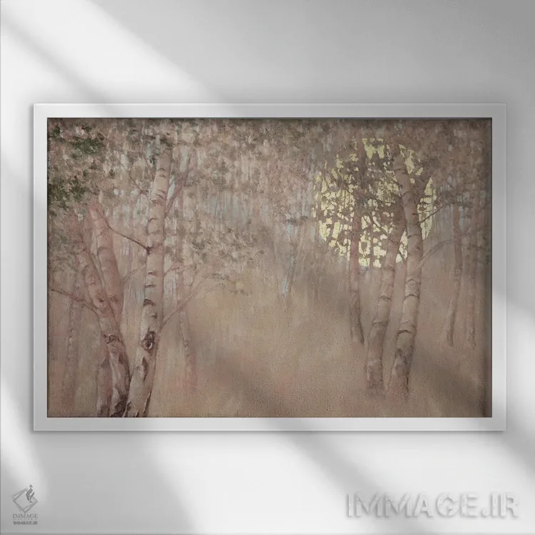 براساس پالت گرم اثر، قاب بلوط روشن (چوبی) پیشنهاد اول است و استخوانی ملایم مکمل. برای سفارشهای پروژهای با ابعاد و قابهای اختصاصی با ایماژ در تماس باشید.