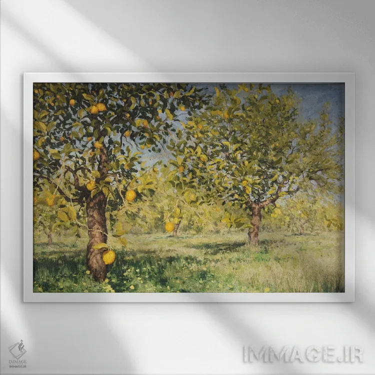 براساس پالت ترکیبی اثر، قاب تیک گرم (چوبی) پیشنهاد اول است و مشکی مات (فریم متوسط) مکمل. برای سفارشهای پروژهای با ابعاد و قابهای اختصاصی با ایماژ در تماس باشید.
