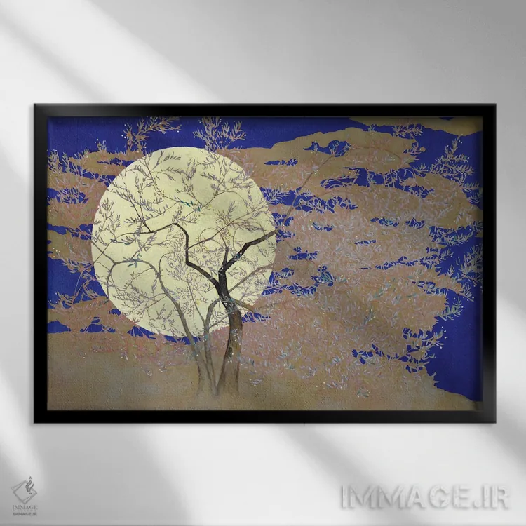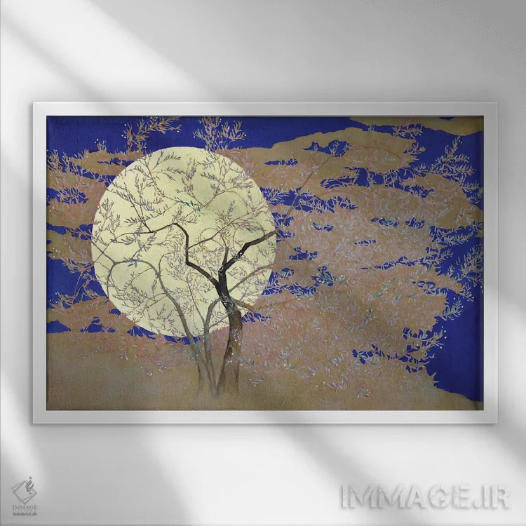براساس پالت ترکیبی اثر، قاب بلوط روشن (چوبی) پیشنهاد اول است و استخوانی ملایم مکمل. برای سفارشهای پروژهای با ابعاد و قابهای اختصاصی با ایماژ در تماس باشید.