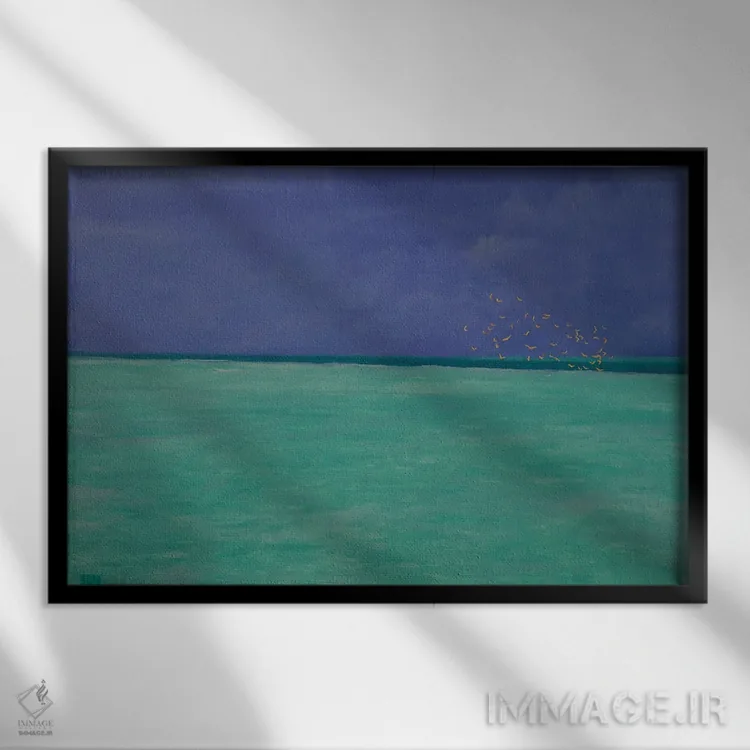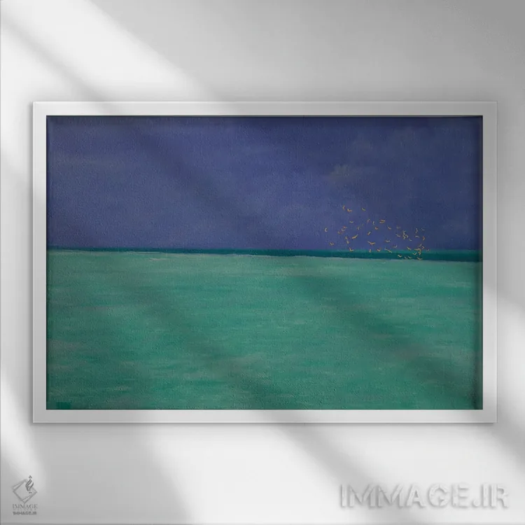 براساس پالت سرد اثر، قاب سفید مات (فریم باریک) پیشنهاد اول است و نقرهای برسخورده (متالیک) مکمل. برای سفارشهای پروژهای با ابعاد و قابهای اختصاصی با ایماژ در تماس باشید.