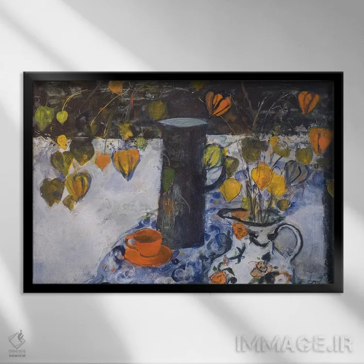 در «چراغهای چینی در کوزه مشکی» اثرِ «آن اورام»، گلها و گیاهان جزئیات نزدیک را چشمنواز نشان میدهد؛ برای راهروهای مینیمال انتخابی خوشسلیقه است. جزئیاتش از نزدیک هم ارزش تماشا دارد.
