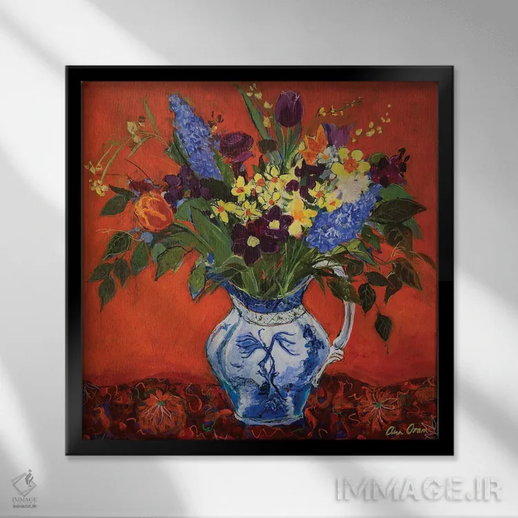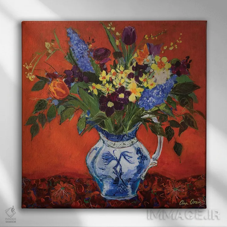 تابلو 2017,گلهای بهاری روی زمینهٔ قرمز، ۲۰۱۷ اثر آن اورام