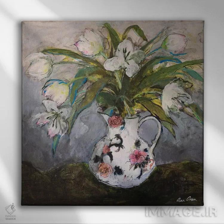 تابلو 2019,لالههای سفید در کوزهای از سنگ آهنی، ۲۰۱۹ اثر آن اورام