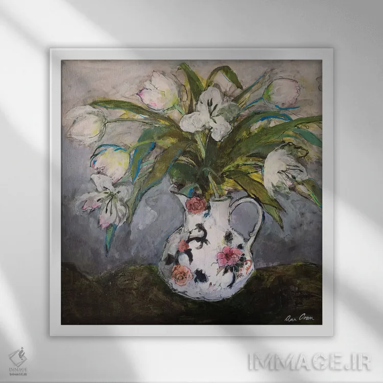 برای دیواری که میخواهید نرمتر دیده شود، «2019، لالههای سفید در کوزهای از سنگ آهنی، ۲۰۱۹» اثرِ «آن اورام» به دیوار، روشناییِ ملایم و دلنشین میدهد؛ برای اتاق خواب انتخابی خوشسلیقه است. برای دیوار گالری هم ترکیبپذیر و خوشنشین است.