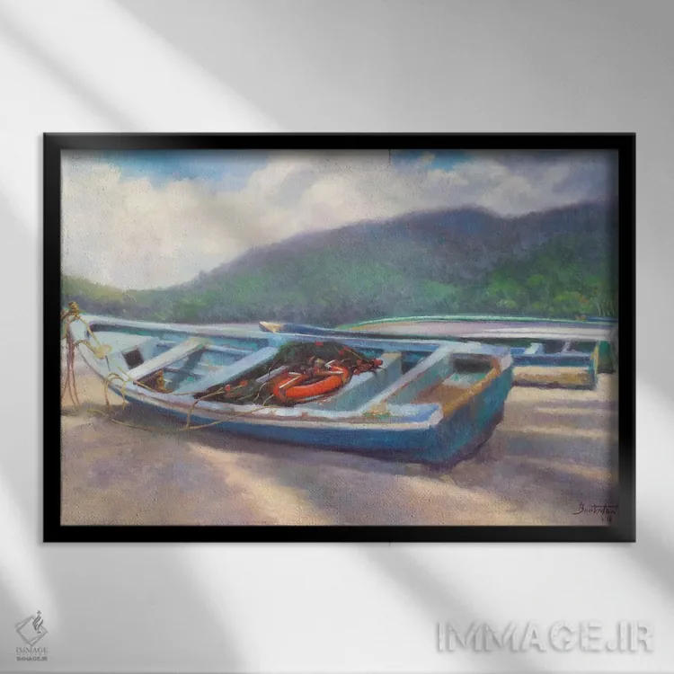 براساس پالت ترکیبی اثر، قاب بلوط روشن (چوبی) پیشنهاد اول است و استخوانی ملایم مکمل. برای سفارشهای پروژهای با ابعاد و قابهای اختصاصی با ایماژ در تماس باشید.
