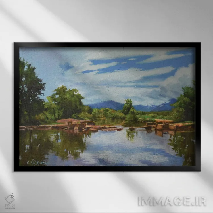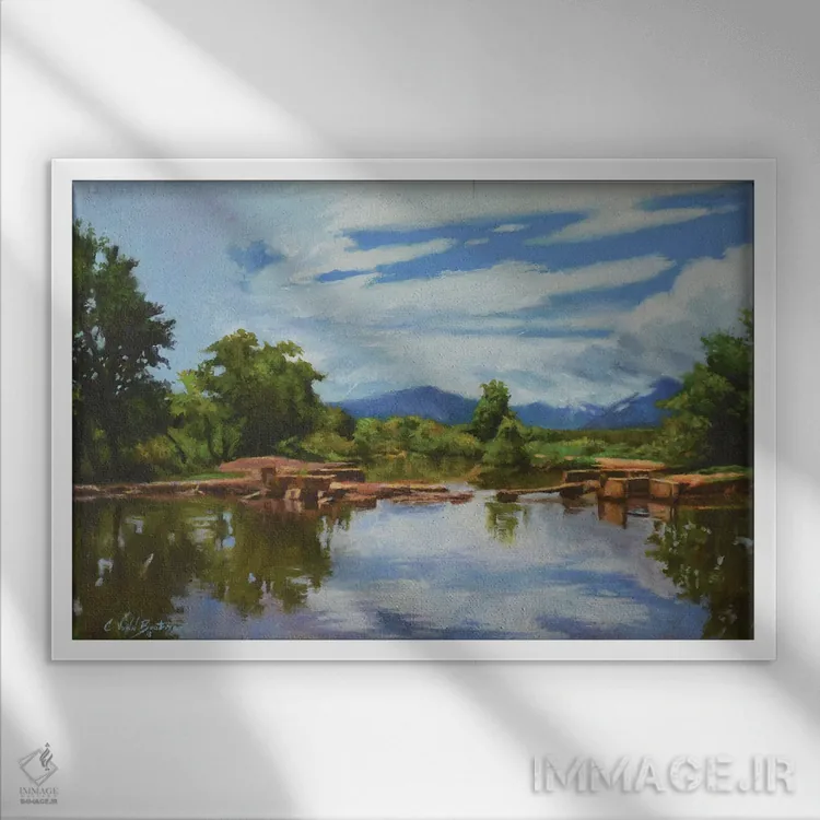 براساس پالت ترکیبی اثر، قاب تیک گرم (چوبی) پیشنهاد اول است و مشکی مات (فریم متوسط) مکمل. برای سفارشهای پروژهای با ابعاد و قابهای اختصاصی با ایماژ در تماس باشید.
