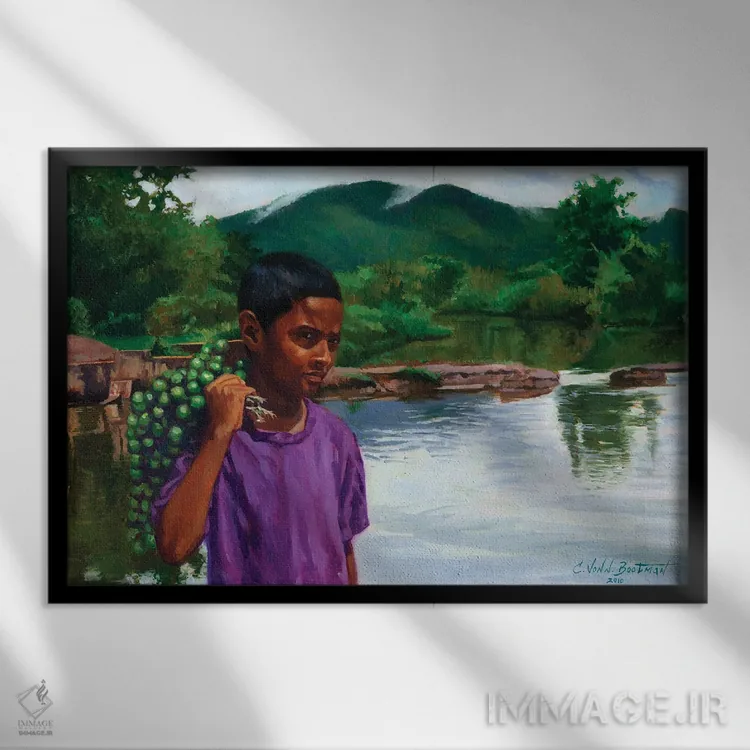 براساس پالت ترکیبی اثر، قاب تیک گرم (چوبی) پیشنهاد اول است و مشکی مات (فریم متوسط) مکمل. برای سفارشهای پروژهای با ابعاد و قابهای اختصاصی با ایماژ در تماس باشید.