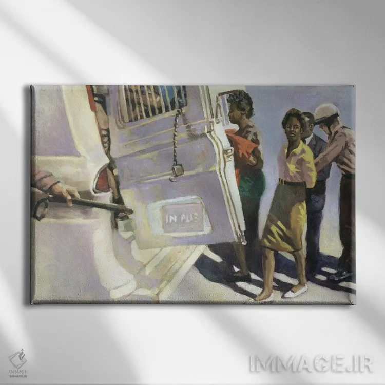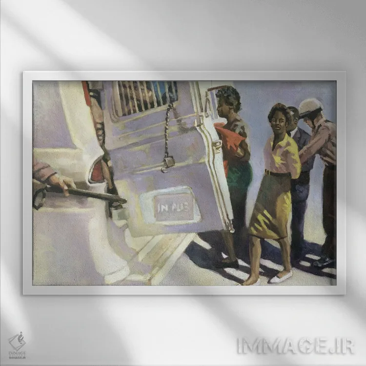 تابلو مهمانی ون پلیس، ۲۰۰۱ اثر کالین بوتمن - نمای قاب‌دار سفید