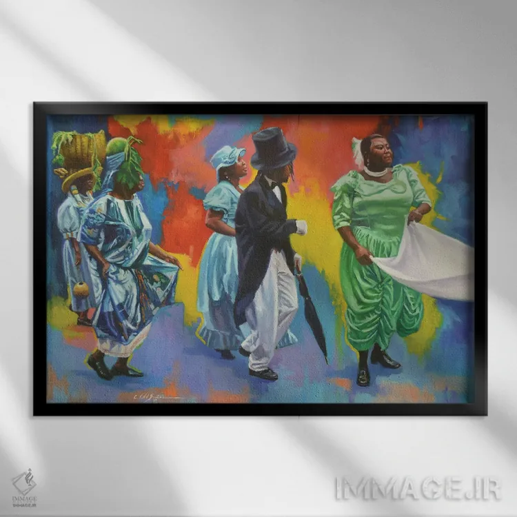 براساس پالت ترکیبی اثر، قاب تیک گرم (چوبی) پیشنهاد اول است و مشکی مات (فریم متوسط) مکمل. برای سفارشهای پروژهای با ابعاد و قابهای اختصاصی با ایماژ در تماس باشید.