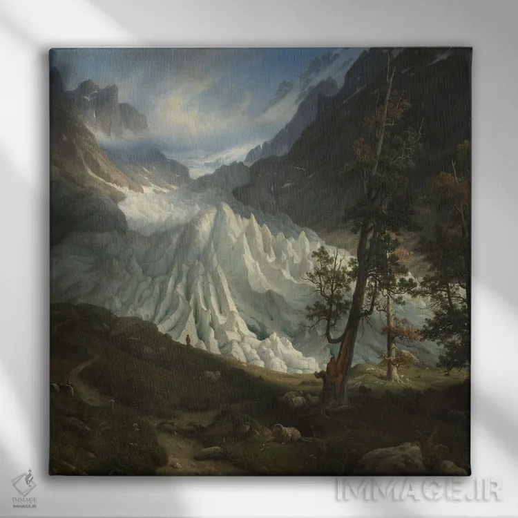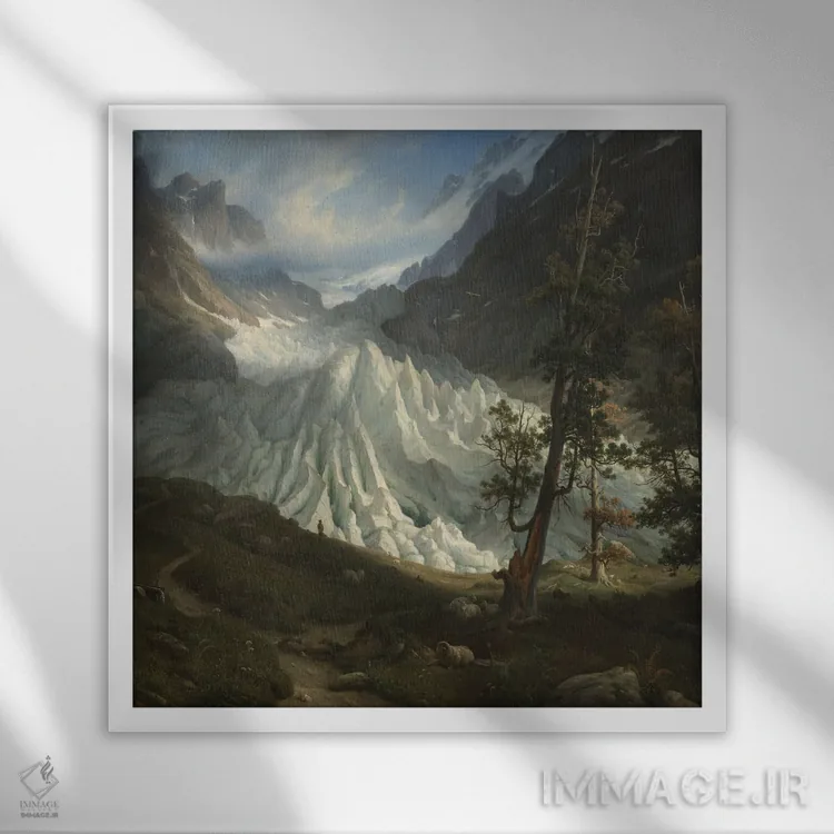 اگر به قابهای رسمی و گالریپسند علاقه داری، «یخچال طبیعی گرینلدد، ۱۸۳۸ (سوئیس)» اثرِ «توماس فرنلی» با موضوعِ این اثر در فضای فاخر کلاسیک گزینهی مطمئنی است.