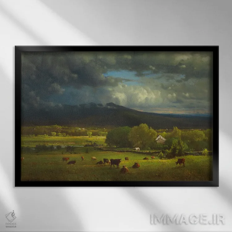اگر میخواهید دیوار کمی سرزندگیِ محترمانه داشته باشد، «غروب خورشید بر رودخانه» اثرِ «جورج اینس پدر (نقاش چشمانداز آمریکایی)» گرما و شخصیت به فضا اضافه میکند، برای اتاق کودک (بدون لحن کودکانه) گزینهٔ مناسبیست. هر بار نگاهش میکنید، یک جزئیات تازه به چشم میآید.