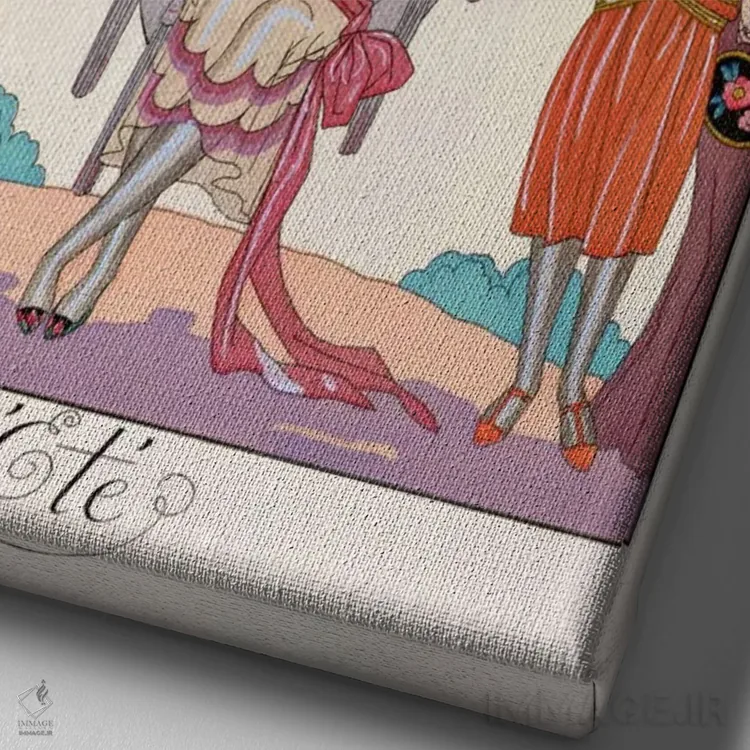 تابلو تابستان، از نشریه "گازت دو بون تون"، ۱۹۲۵ اثر جورج باربیه (طراح و تصویرگر فرانسوی) - نمای نزدیک بافت بوم