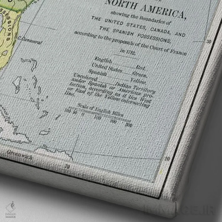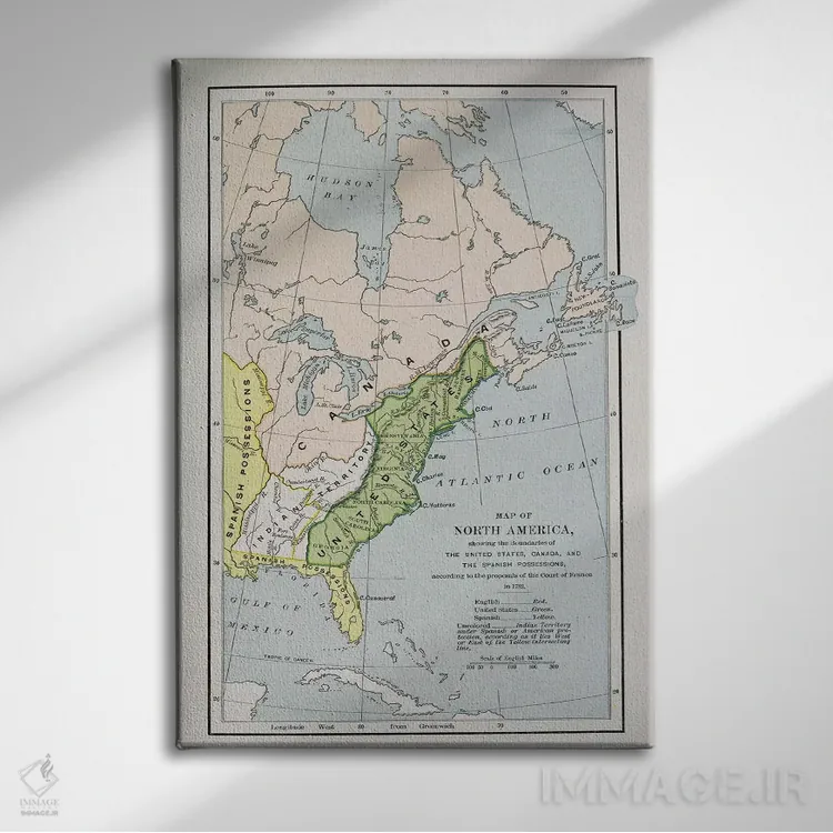 تابلو نقشهٔ آمریکای شمالی با مرزهای مالکیت، از "تاریخ روایی و انتقادی آمریکا" اثر مکتب انگلیسی (سبک یا جنبش هنری)