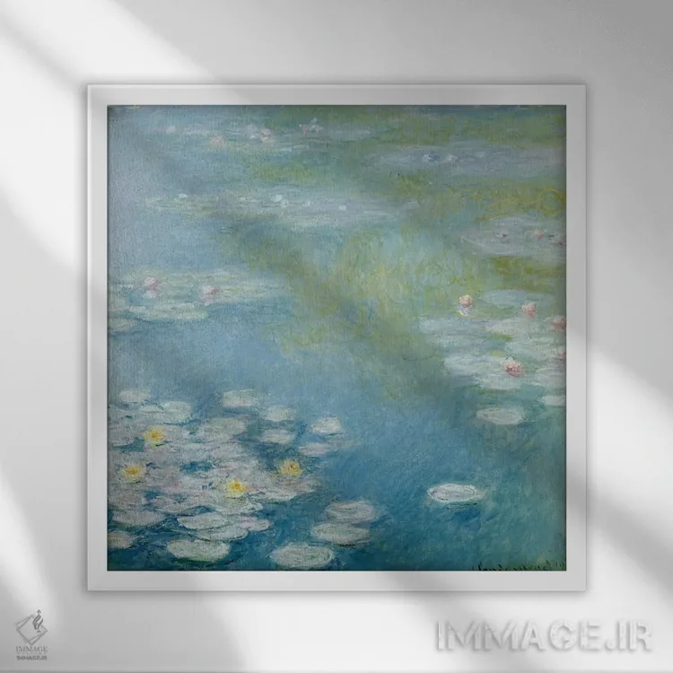 اگر به قابهای رسمی و گالریپسند علاقه داری، «نیلوفرهای آبی در ژیورنی، ۱۹۰۸» اثرِ «کلود مونه (نقاش معروف فرانسوی)» با موضوعِ این اثر در فضای فاخر کلاسیک گزینهی مطمئنی است.