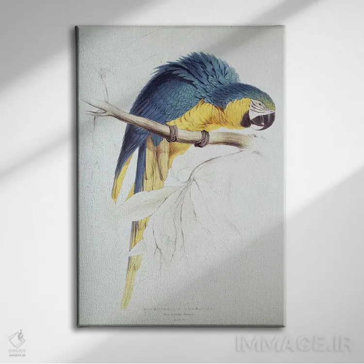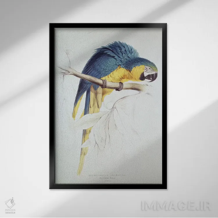 اگر میخواهید دیوار کمی سرزندگیِ محترمانه داشته باشد، «طوطی ماکائوی آبی و زرد» اثرِ «ادوارد لیر (شاعر و تصویرگر انگلیسی)» مثل یک امضای بامزه اما متین عمل میکند، برای دکورهای مدرن و مینیمال گزینهٔ مناسبیست. هم فضا را گرم میکند، هم شلوغش نمیکند.