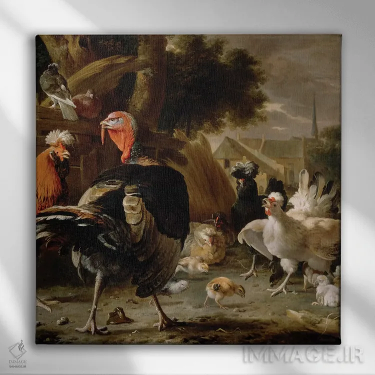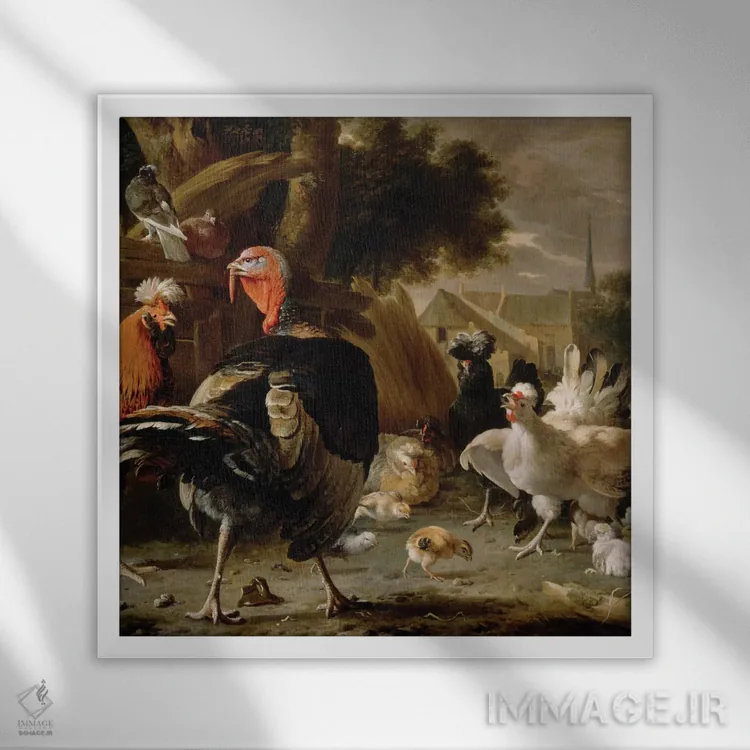 اگر به آثار حیوانات علاقه دارید، «حیاط مرغداری، حدود ۱۶۶۸» اثرِ «ملکیور ده هوندهکوتر (نقاش هلندی)» گرما و شخصیت به فضا اضافه میکند، برای کافههای کوچک و صمیمی گزینهٔ مناسبیست. حسش صمیمی است، اما کیفیتش جدی و خوشپرداخت.