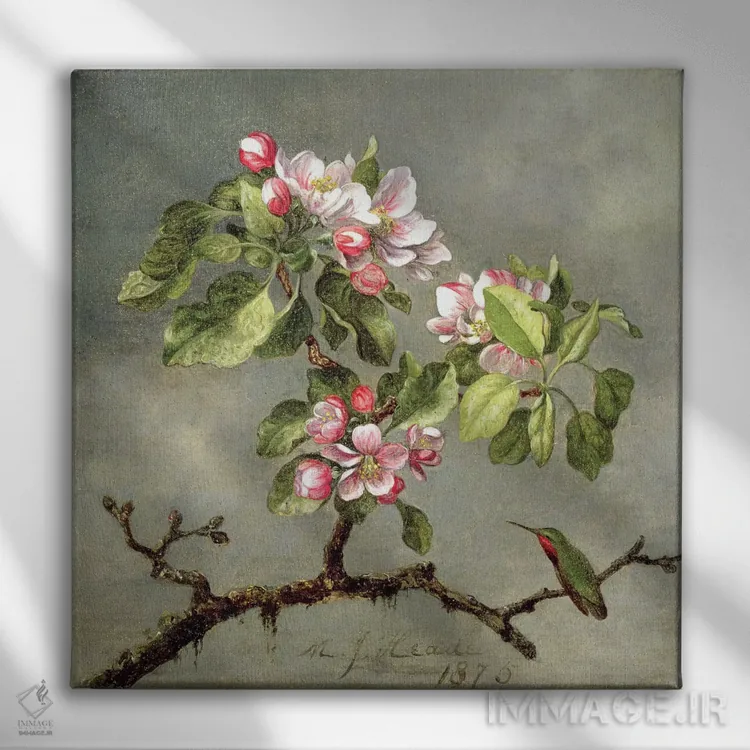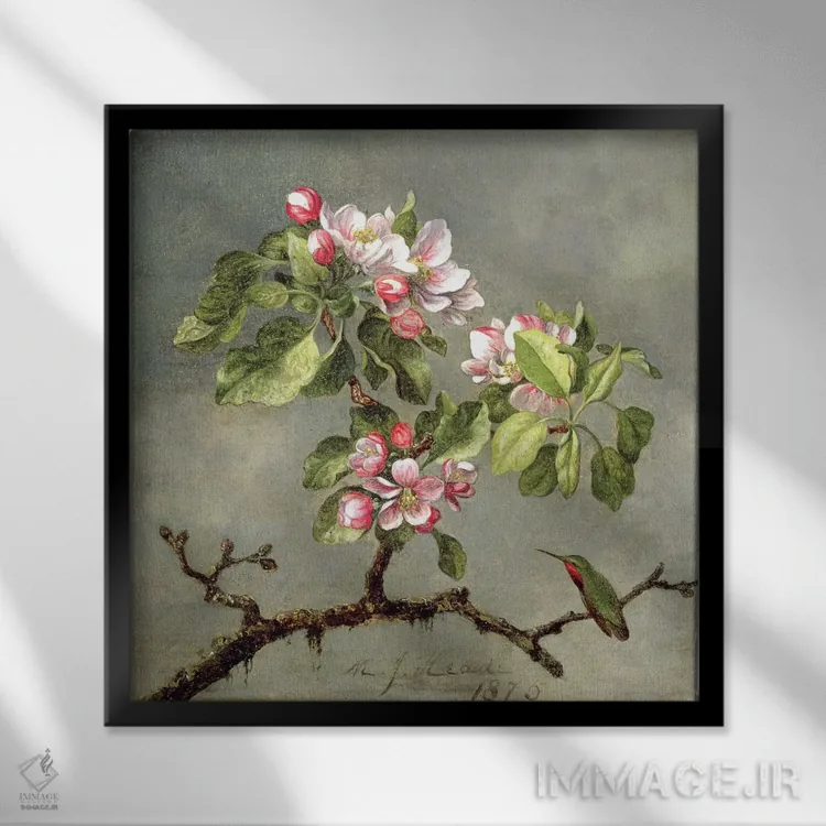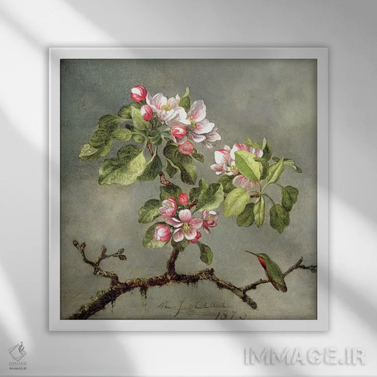 اگر به دکورهای طبیعی علاقه دارید، «1875، شکوفههای سیب و مرغ مگسخوار، ۱۸۷۵» اثرِ «مارتین جانسون هید (نقاش طبیعتگرای آمریکایی)» چیدمان را از خشکی بیرون میآورد، برای نشیمنهای روشن گزینهٔ مناسبیست. برای دیوار گالری هم ترکیبپذیر و خوشنشین است.