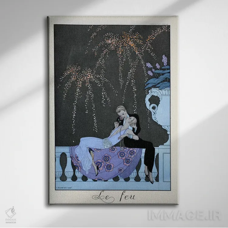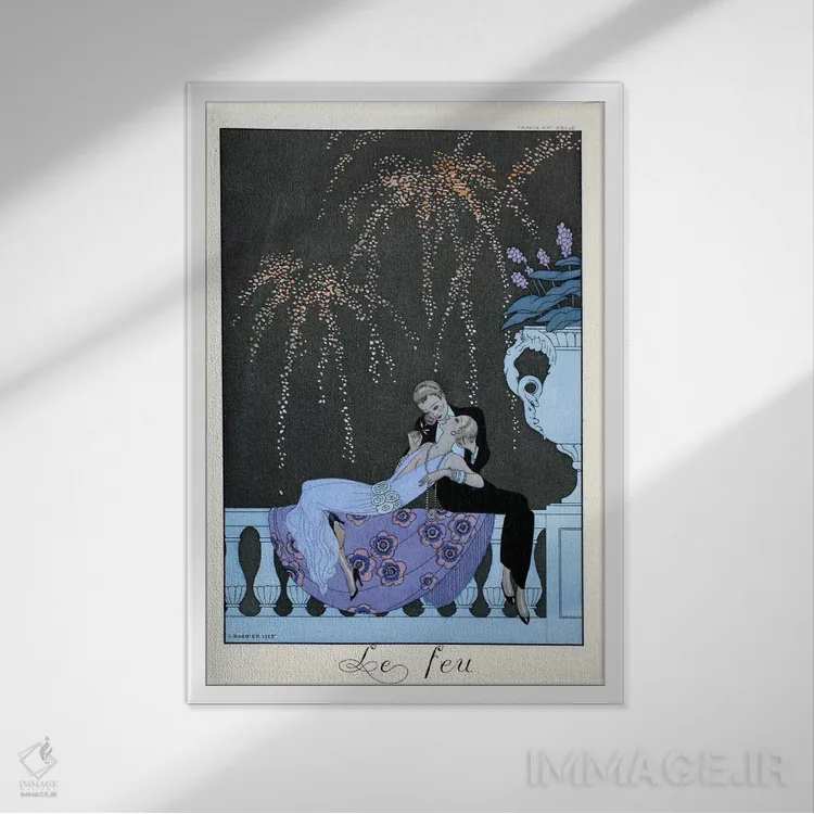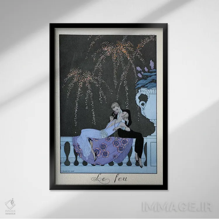 اگر دکور شما خطوط تمیز و کمی درخشش دارد، هنری در «آتش، از "فالبالا و فانفرلوش، سالنامهٔ مد زمان"» اثرِ «جورج باربیه (طراح و تصویرگر فرانسوی)» خیلی خوب مینشیند.