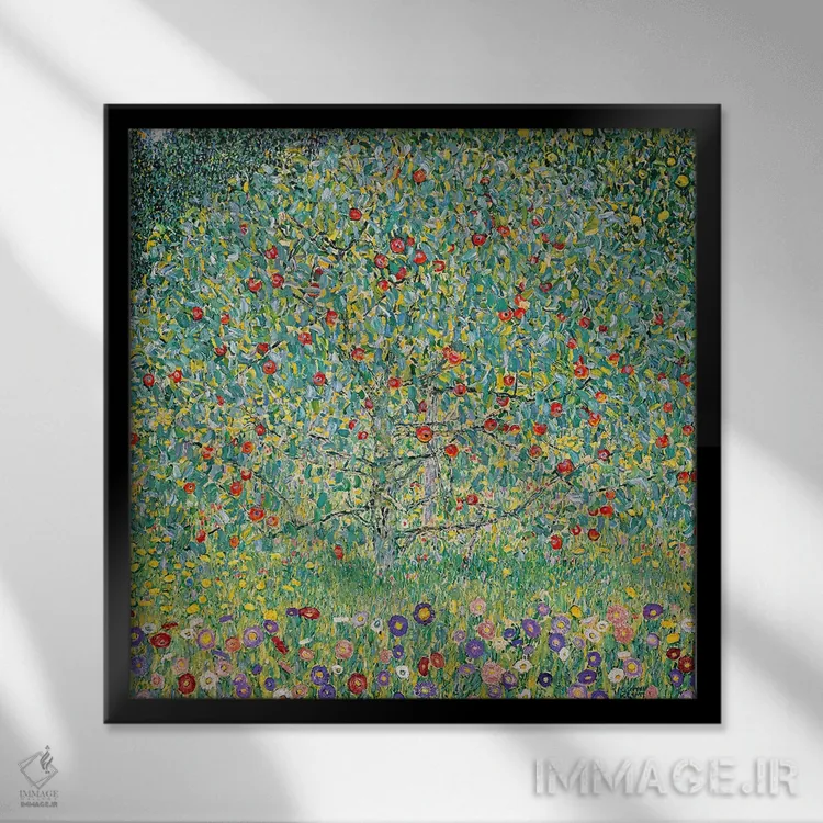 تابلو درخت سیب (آپل‌باوم)، ۱۹۱۲ اثر گوستاو کلیمت - نمای قاب‌دار مشکی