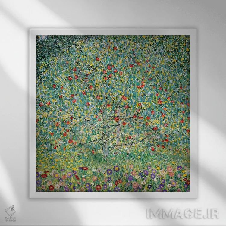 تابلو درخت سیب (آپل‌باوم)، ۱۹۱۲ اثر گوستاو کلیمت - نمای قاب‌دار سفید
