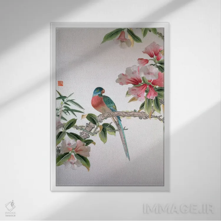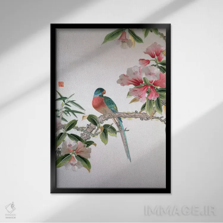 اگر به آثار حیوانات علاقه دارید، «جی بر شاخهای گلدار، دوره جمهوری» اثرِ «مکتب چین (سبک یا گروه نقاشان چینی)» فضا را صمیمیتر و دعوتکنندهتر نشان میدهد، برای دکورهایی با رنگهای خنثی گزینهٔ مناسبیست. هر بار نگاهش میکنید، یک جزئیات تازه به چشم میآید.