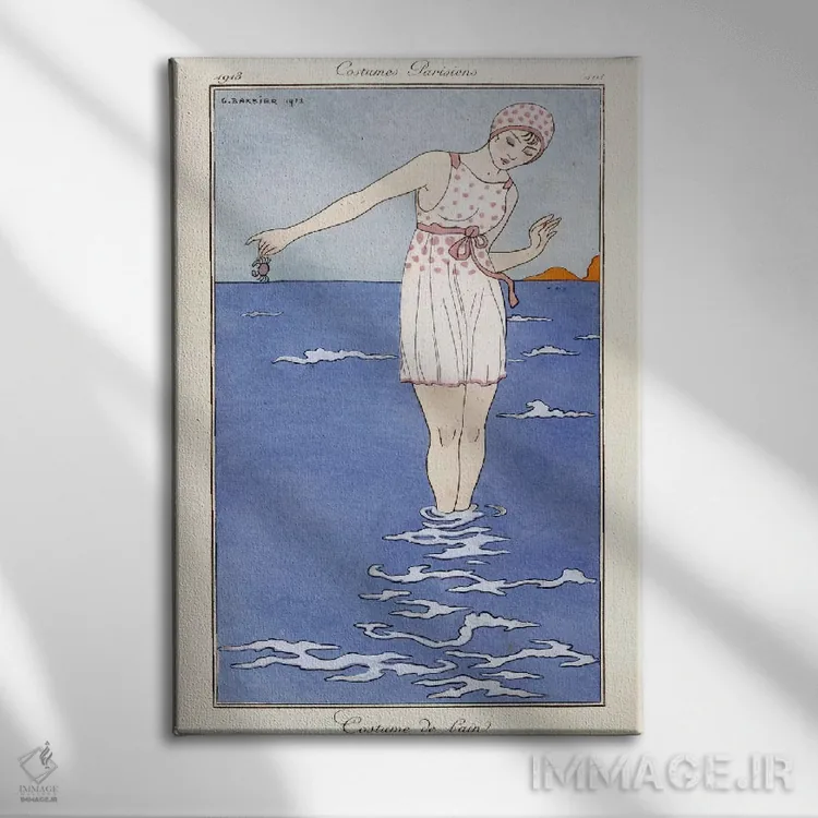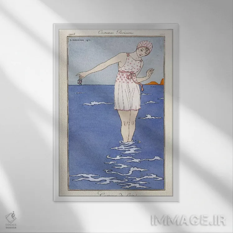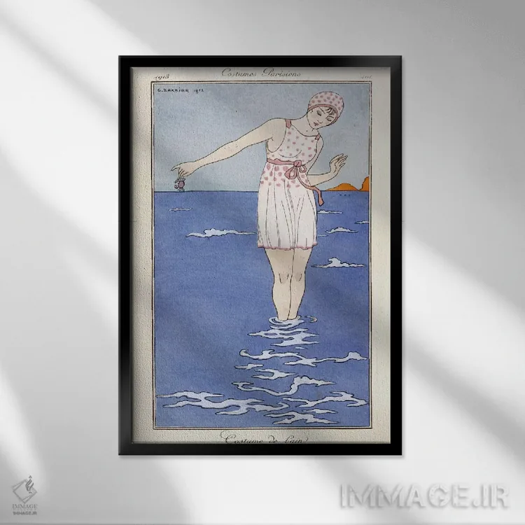 تابلو لباس پاریسی: لباس شنای ۱۹۱۳ (چاپ رنگی) اثر جورج باربیه (طراح و تصویرگر فرانسوی)