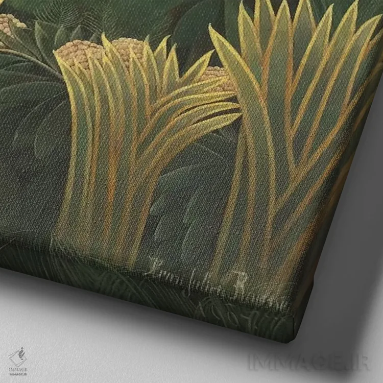 تابلو مارافسون (لا شارموز دو سرپن)، ۱۹۰۷ اثر آنری روسو - نمای نزدیک بافت بوم