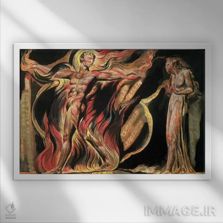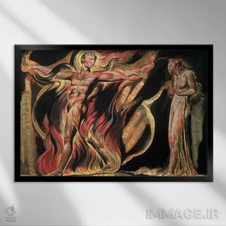 این اثرِ «ویلیام بلیک (نقاش و شاعر انگلیسی)» در لحن کلاسیک، وقار بصری دارد؛ موضوعِ این اثر هم برای دیوارِ شاخص و نورپردازی گرم بسیار مناسب است.
