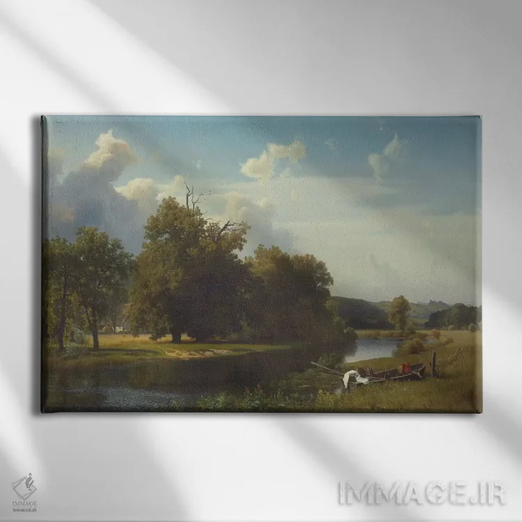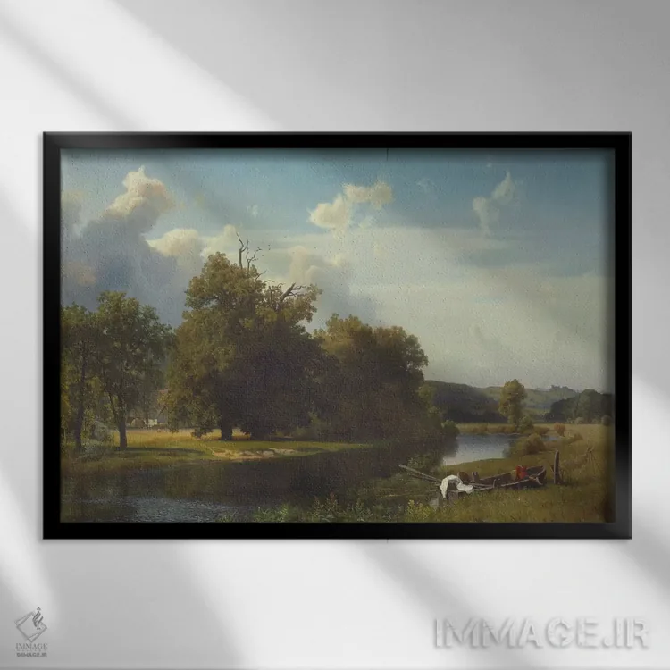 «منظرهای از رودخانه، وستفالیا، ۱۸۵۵» اثرِ «آلبرت بیرشتات (نقاش منظره آمریکایی)» یک انتخاب کلاسیک و مرتب است؛ موضوعِ این اثر در آن برای دکورهای لوکس و چوبی عالی مینشیند.