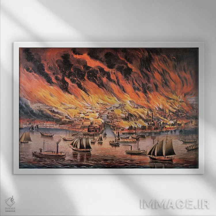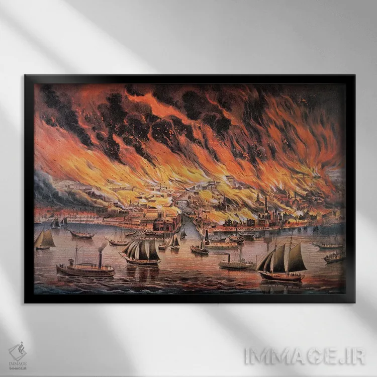 اگر به قابهای رسمی و گالریپسند علاقه داری، «آتشسوزی بزرگ شیکاگو، ۱۸۷۱» اثرِ «کاریه و آیووز (استودیو لیتوگرافی تاریخی آمریکا)» با موضوعِ این اثر در فضای فاخر کلاسیک گزینهی مطمئنی است.