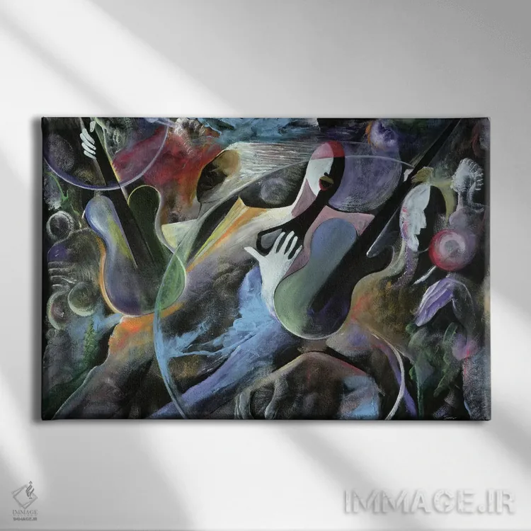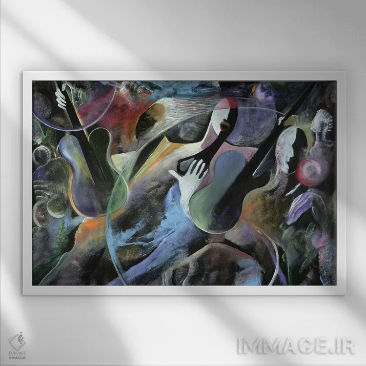 این تابلو با موضوعِ این دسته و اجرای هنری، انرژیِ موسیقی را به فضا منتقل میکند اثرِ «آیکال بکفورد».