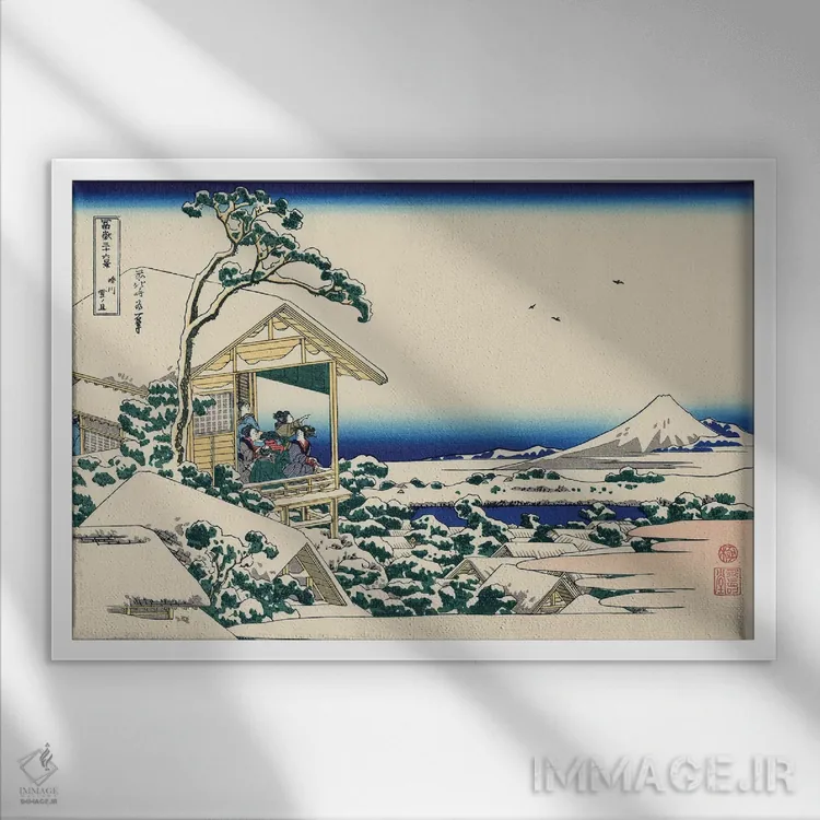 این اثرِ «کاتسوشیکا هوکوسای (نقاش و هنرمند ژاپنی)» در لحن کلاسیک، وقار بصری دارد؛ موضوعِ این اثر هم برای دیوارِ شاخص و نورپردازی گرم بسیار مناسب است.