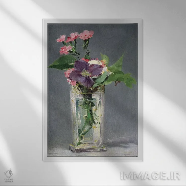 برای اتاق خواب و نشیمنهای آرام، «میخک و کلماتیس در گلدان بلوری، حدود ۱۸۸۲» اثرِ «ادوارد مانه (نقاش معروف فرانسوی)» به دیوار، روشناییِ ملایم و دلنشین میدهد؛ برای کنار میز آرایش یا کنسول انتخابی خوشسلیقه است. حضورش آرام است، اما بیاثر نیست.