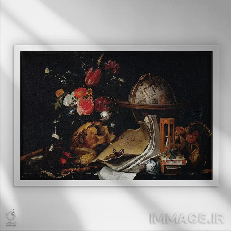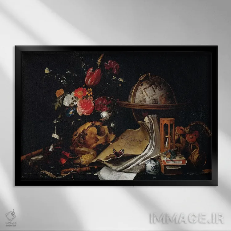 تابلو وانیتاس (طبیعت بی‌جان نماباور مرگ) اثر پییتر کلایز - نمای قاب‌دار مشکی