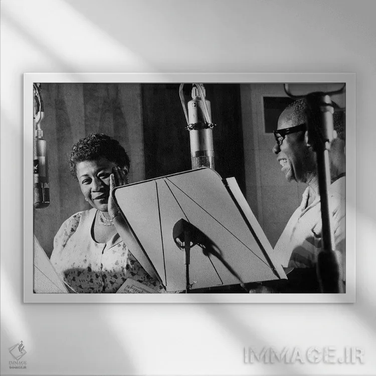 تابلو New York, 1950,الا فیتزجرالد و لوئی آرمسترانگ در استودیو دکا رکوردز، نیویورک، ۱۹۵۰ اثر رو دز آرشیو (آرشیو خیابان)