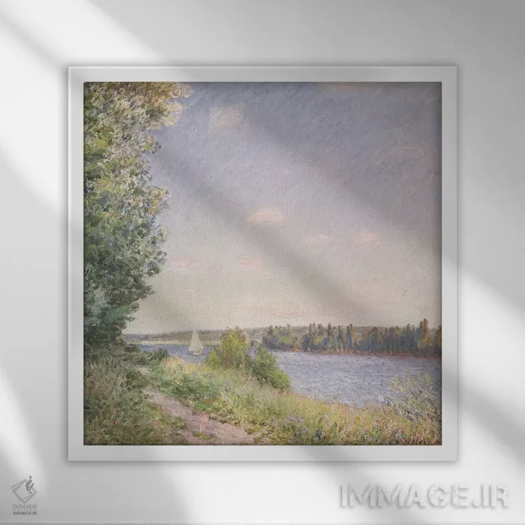 تابلو the water path in the evening, Sahurs, 1894,نورماندی، آبراهه در شامگاه، ساحورس، ۱۸۹۴ اثر آلفرد سیسلی (نقاش امپرسیونیست انگلیسی-فرانسوی) - نمای روبه‌رو روی دیوار