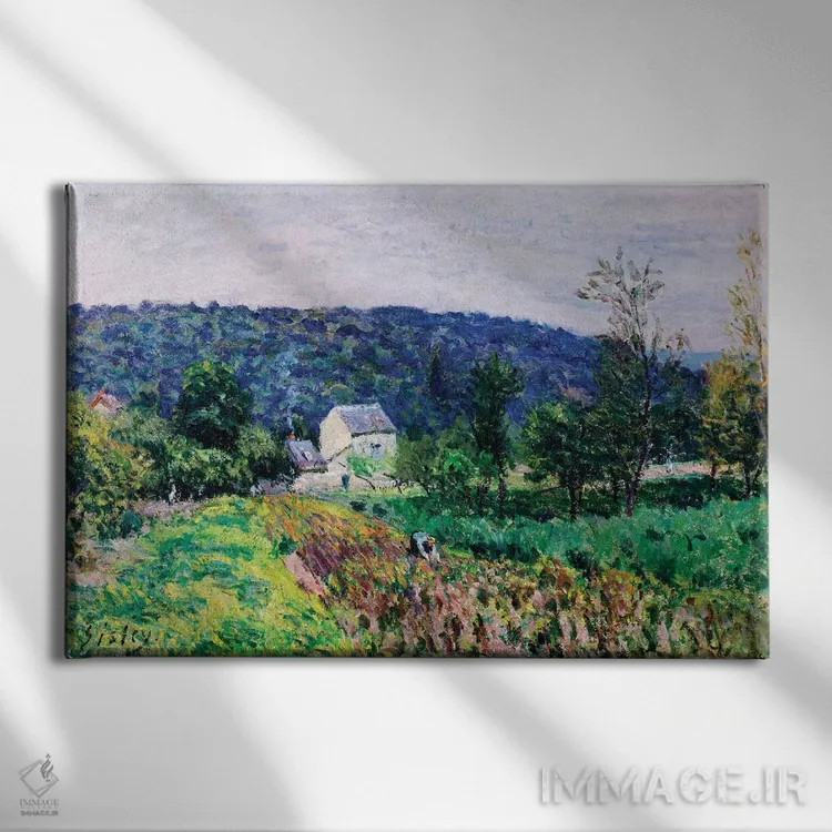 این اثرِ «آلفرد سیسلی (نقاش امپرسیونیست انگلیسی—فرانسوی)» در لحن کلاسیک، وقار بصری دارد؛ موضوعِ این اثر هم برای دیوارِ شاخص و نورپردازی گرم بسیار مناسب است.