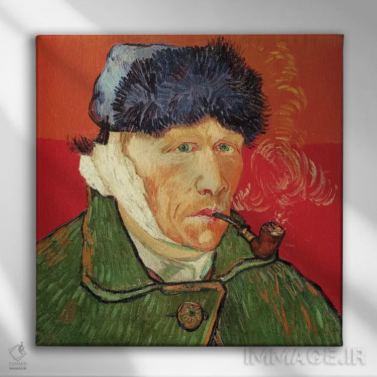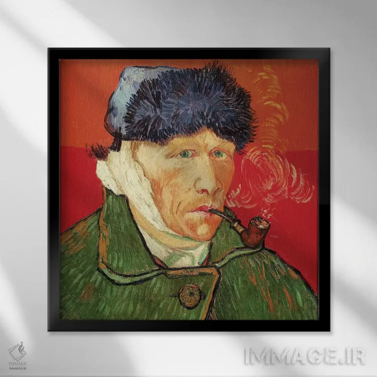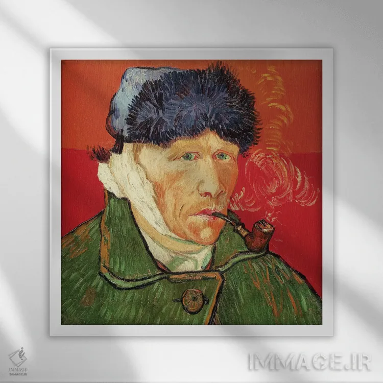 تابلو 1889,خودنگاره با گوش بانداژ شده، ۱۸۸۹ اثر ونسان ون گوگ (نقاش مشهور هلندی پست‌امپرسیونیسم) - نمای پرسپکتیو محصول