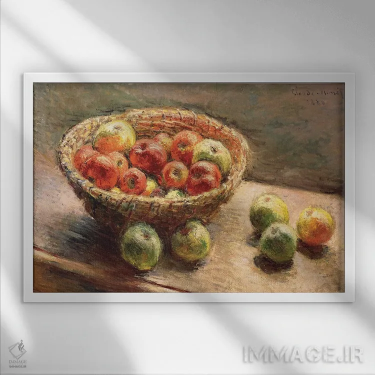 «1880، کاسهای از سیب؛ لو پانیه دو پوم، ۱۸۸۰» اثرِ «کلود مونه (نقاش معروف فرانسوی)» یک انتخاب خوشمزه برای آشپزخانه و فضای غذاخوری است.