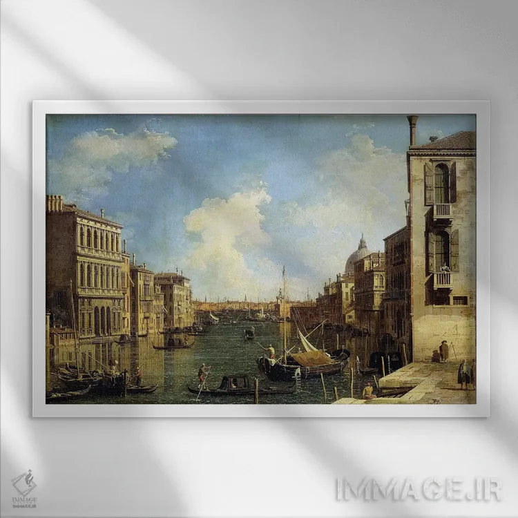 تابلو Venice, Looking East from the Campo di San Vio,کانال بزرگ ونیز، نمای رو به شرق از میدان سن ویو اثر کانالتو (نقاش ایتالیایی ونیزی منظره) - نمای قاب‌دار سفید
