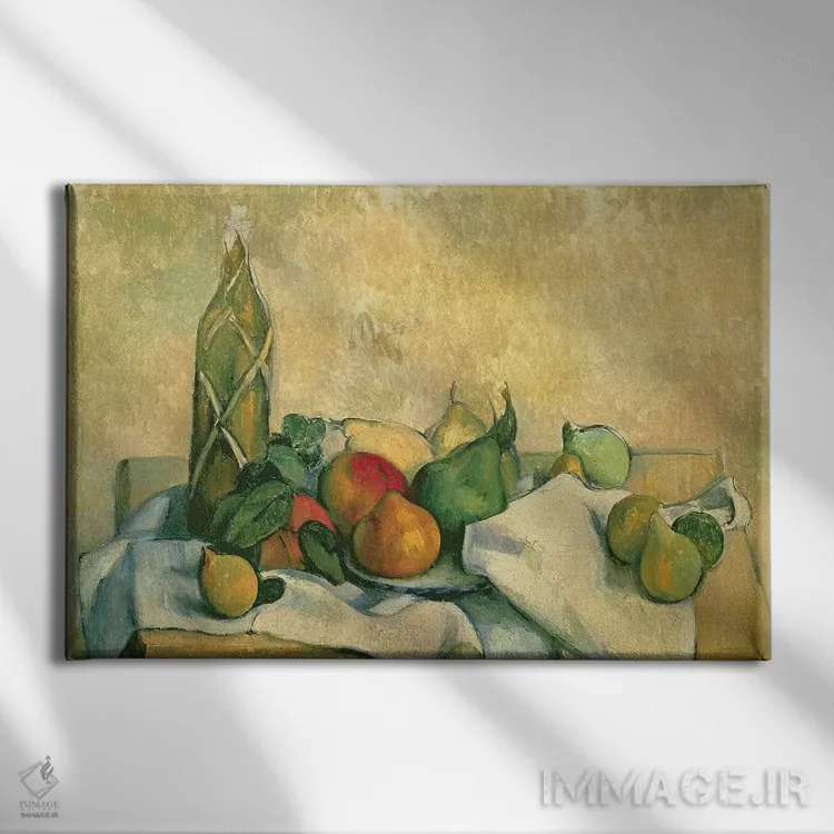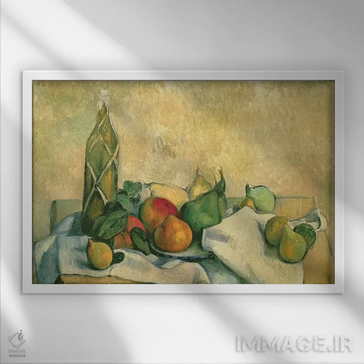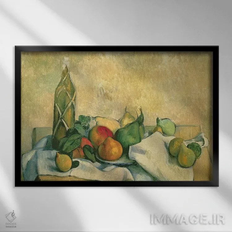 «1888—90، طبیعت بیجان با بطری لیکور، ۱۸۸۸—۹۰» اثرِ «پل سزان» یک انتخاب خوشمزه برای آشپزخانه و فضای غذاخوری است.