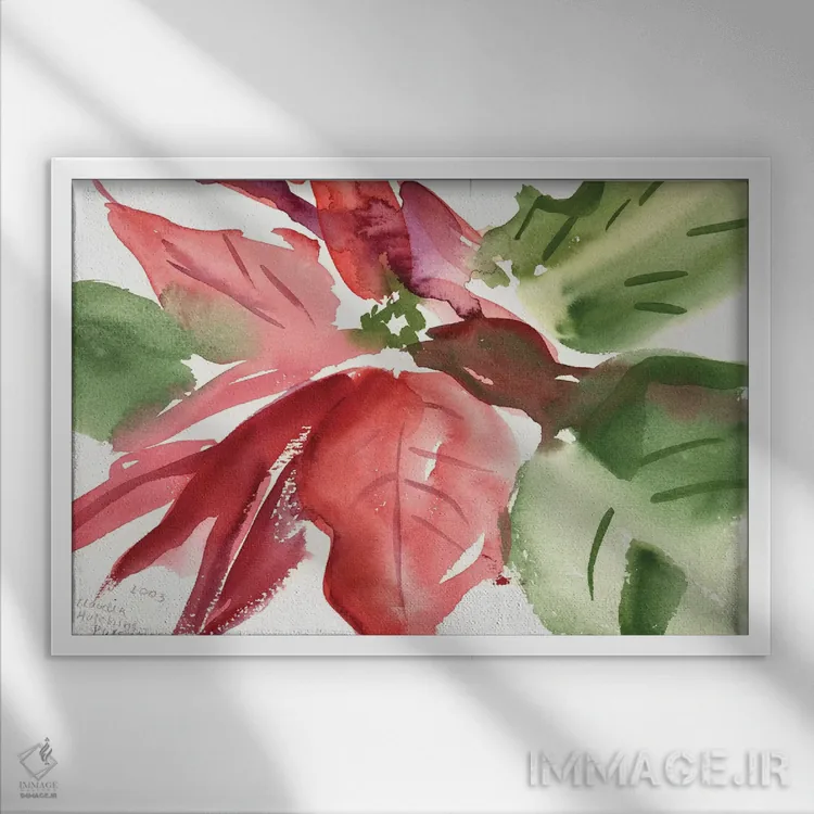 تابلو 2003,پوینستیا، ۲۰۰۳ (گل کریسمس) اثر کلودیا هاچینس-پوشاوی - نمای قاب‌دار سفید