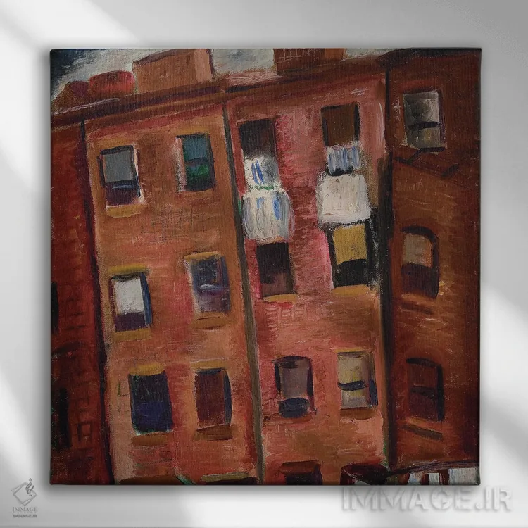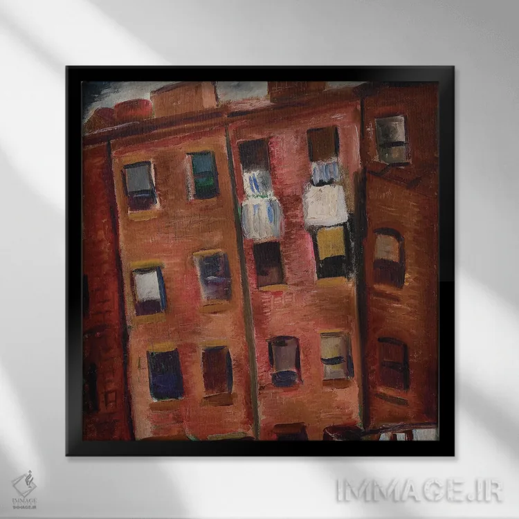 این اثر با عنوان «خانههای اجارهای (محله فقیرنشین)» اثرِ «مالوین گری جانسون» حس نظم و استحکام به فضا بدهد؛ برای نشیمنهای مینیمال انتخابی خوشسلیقه است. فضا را شلوغ نمیکند؛ فقط ساختار میدهد.
