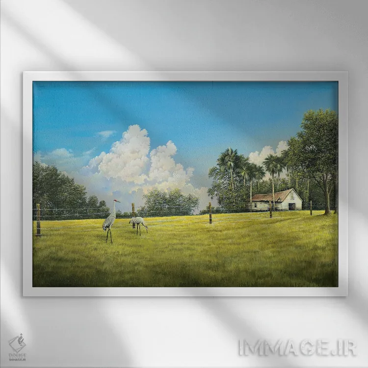 این اثر با عنوان «مزرعهٔ درناها» اثرِ «بروس ناوراکه» بافت و جزئیات را طوری نشان میدهد که نگاه میماند؛ برای نشیمنهای خانوادگی انتخابی خوشسلیقه است. حسش صمیمی است، اما کیفیتش جدی و خوشپرداخت.