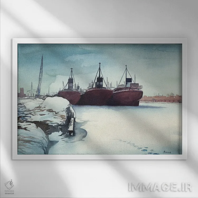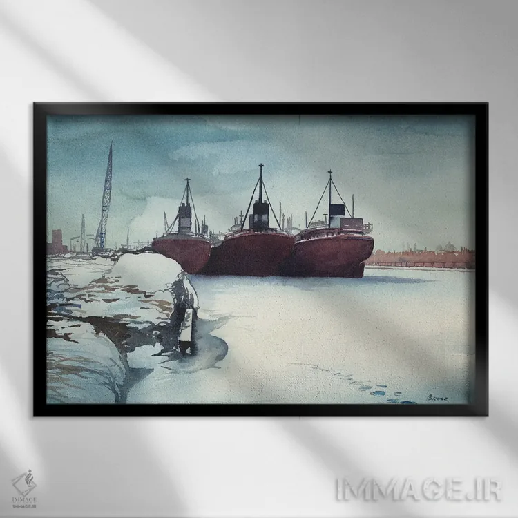 تابلو اسکلهٔ یخ‌زده اثر بروس ناوراکه - نمای قاب‌دار سفید